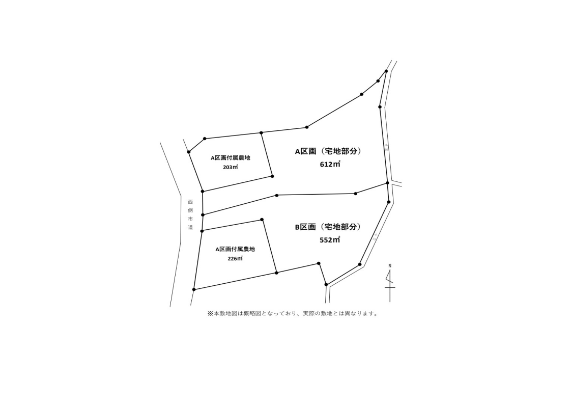 - A区画:612㎡(約185.13坪)+農地部分203㎡(約61.40坪)/B区画:552㎡(約166.98坪)+農地部分226㎡(約68.36坪) ※価格は共に1,400万円/A区画は平家のみ建築可/農地法第5条による農地転用が必要となります。 /農地部分は農地法第3条による許可が必要となります。また、1年間の借地を得て所有権移転となります。/詳細はお気軽にお問い合わせください。